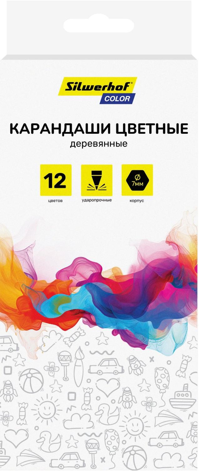 Карандаши цв. Silwerhof Color 2.8мм шестигран. дерево ассорти 12цв. коробка / европод.