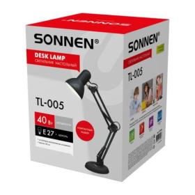 Настольная лампа-светильник SONNEN TL-005, подставка, 40 Вт, Е27, черный, высота 50 см, 237646