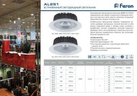 Светильник встраиваемый светодиодный, для торгового освещения (ДВО) FERON AL251, 30W 4000К (белый), 170-265V, 2700Lm, IP20, угол рассеивания 60°, цвет белый, корпус алюминий, рассеиватель стекло, 190*190*62 мм, монтажн.отв. 165*165 мм.