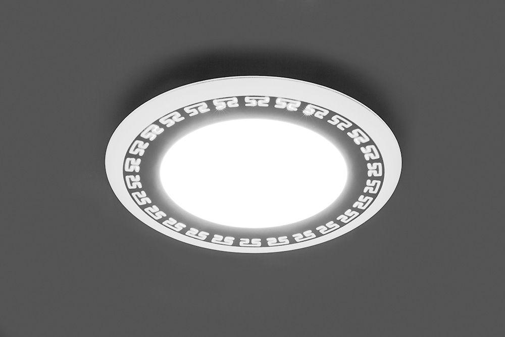 Светильник встраиваемый светодиодный, с белой LED подсветкой (ДВО) FERON AL2440, 6W 4000К (белый), 175-265V, 480Lm, IP20, угол рассеивания 120°, цвет белый, корпус алюминий, рассеиватель матовый акриловый полимер, 120*120*28.5 мм, монтажн.отв. 70*70 мм.