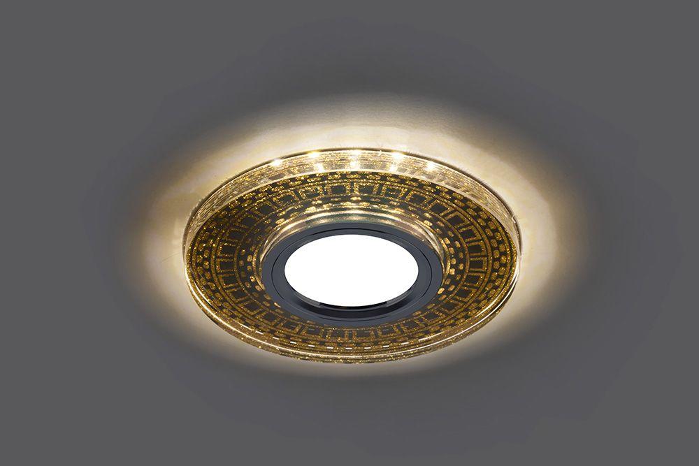 Светильник потолочный встраиваемый (ИВО) FERON CD981, под лампу с LED подсветкой 15LED*2835 SMD 4000K, MR16 G5.3, прозрачный-золото хром, круг, 110*110*22 мм, монтажный диаметр 60мм, корпус стекло, неповоротный