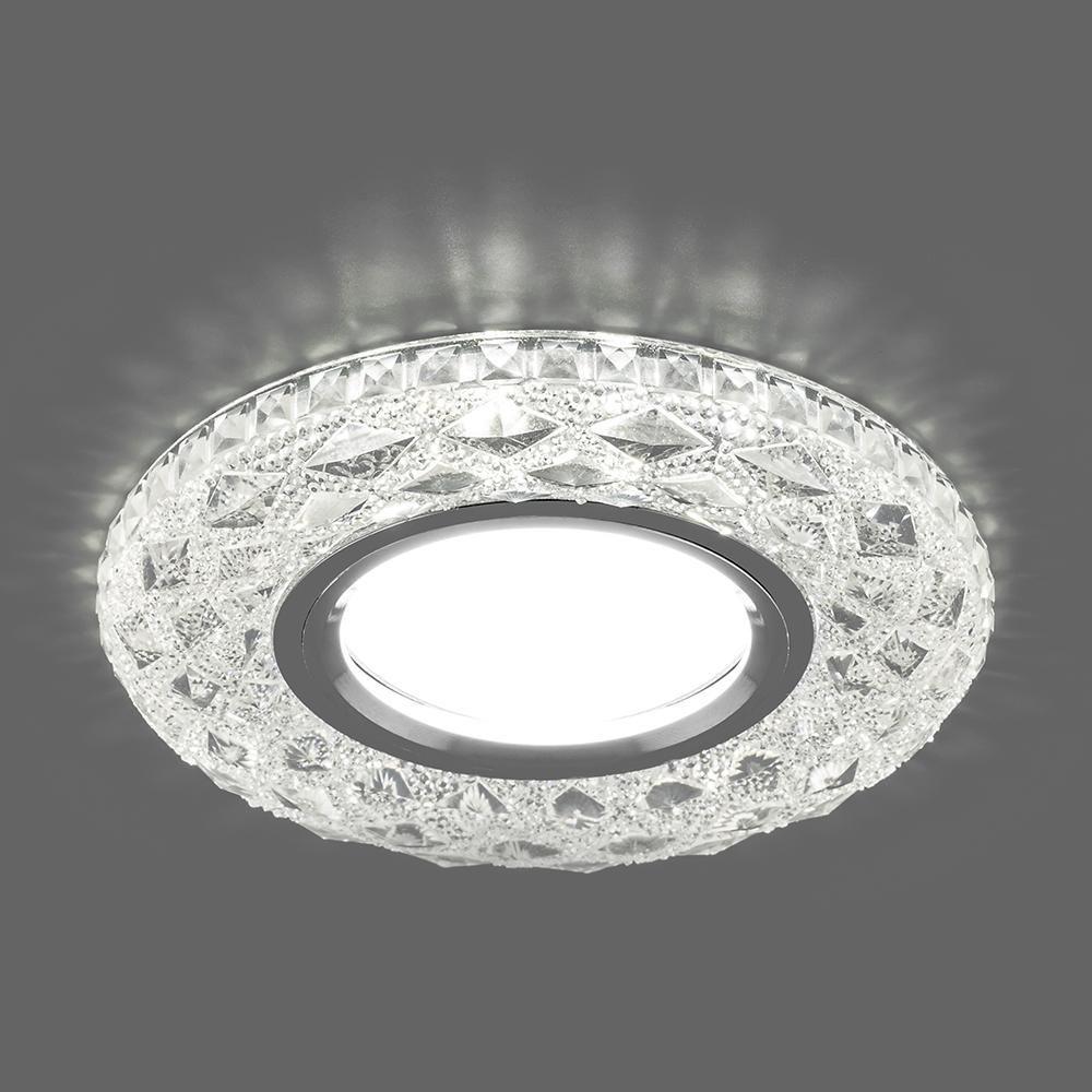 Светильник потолочный встраиваемый (ИВО) FERON CD921, под лампу с LED подсветкой 15LED*2835 SMD 4000K, MR16 G5.3, прозрачный хром, круг, 110*110*25 мм, монтажный диаметр 60мм, корпус полимер, неповоротный