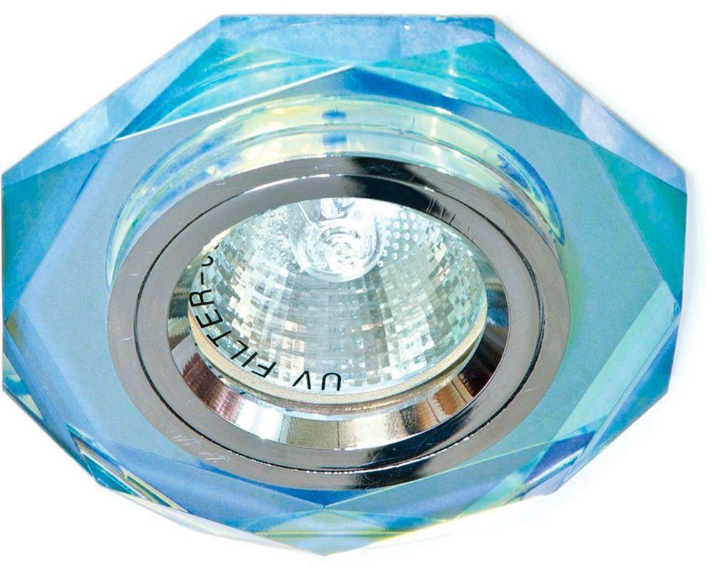 Светильник потолочный встраиваемый (ИВО) FERON DL8020-2 / 8020-2, под лампу MR16 G5.3, мультиколор хром, 8-ми гранник, 90*90*25 мм, монтажный диаметр 60мм, корпус стекло, неповоротный