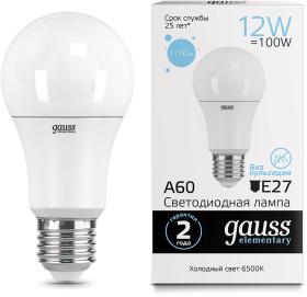 Лампа светодиодная Gauss Elementary 12Вт цок.:E27 груша 220B св.свеч.бел.хол. A60 (упак.:10шт) (23232)