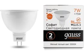 Лампа светодиодная Gauss 7Вт цок.:GU5.3 рефлек. 220B св.свеч.бел.теп. MR16 (упак.:1шт) (13517)