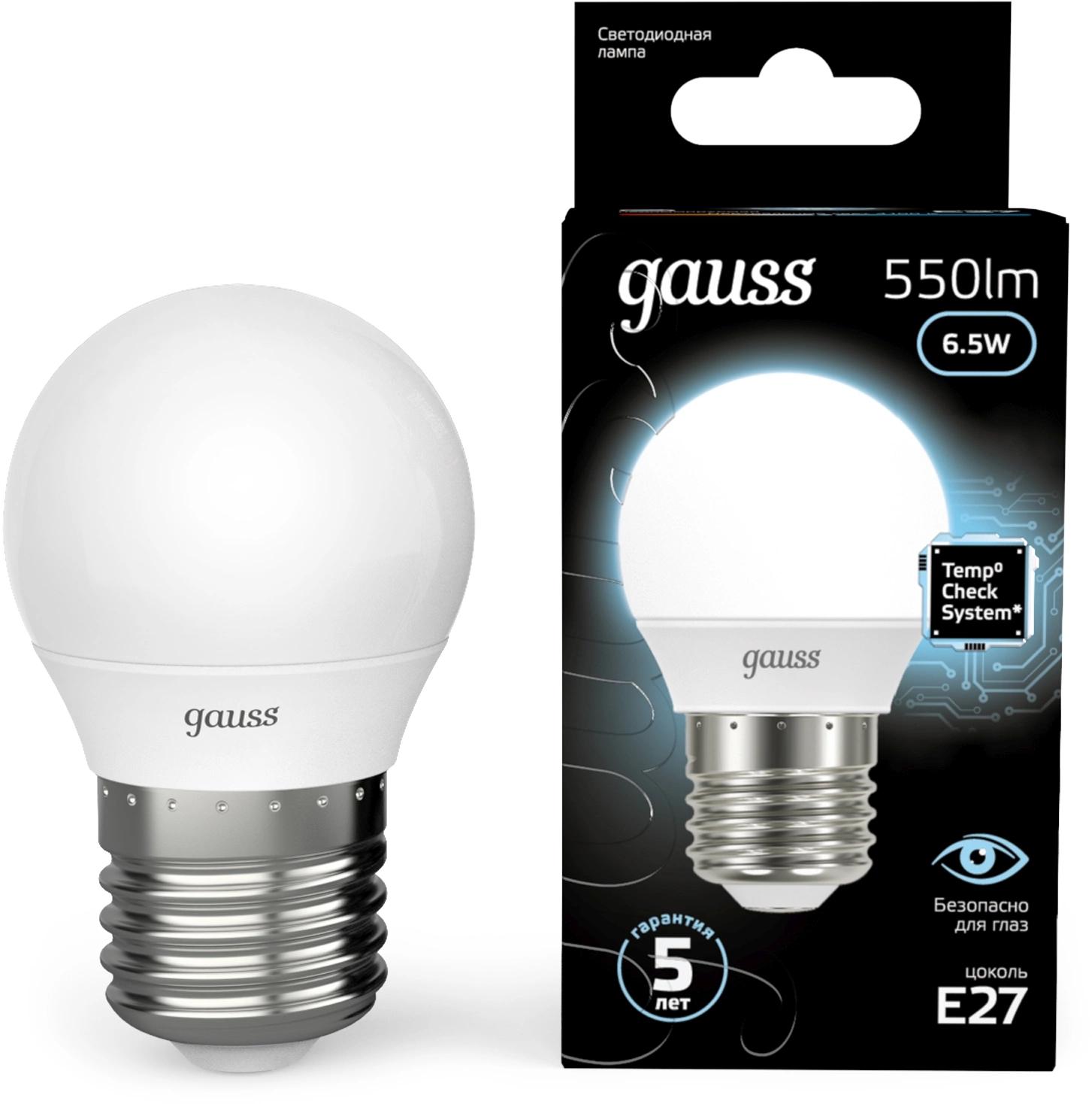 Лампа светодиодная Gauss 6.5Вт цок.:E27 шар 220B св.свеч.бел.нейт. P45 (упак.:10шт) (105102207)