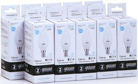 Лампа светодиодная Gauss Elementary 8Вт цок.:E14 свеча 220B св.свеч.бел.хол. C37 (упак.:10шт) (33138)