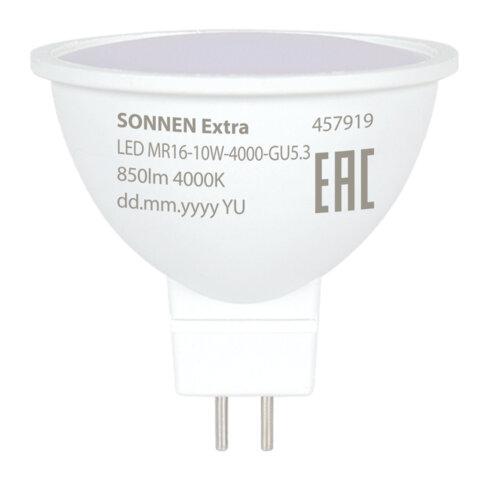 Лампа светодиодная SONNEN EXTRA, 10 (90) Вт, GU5.3, софит, нейтральный белый, 30000 ч, LED MR16-GU5.3-10W-4000, 457919