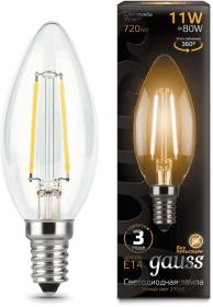 Лампа Gauss филаментная E14 свеча 11W 2700К теплый свет LED 103801111