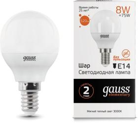 Лампа LED GAUSS E14 шар 8Вт одна шт. [53128]