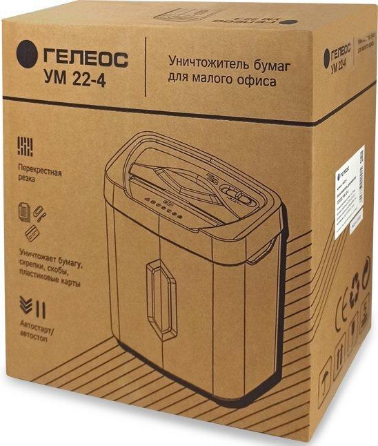 Уничтожитель документов ГЕЛЕОС УМ26-4, DIN P-4 (4 ур-нь секр.), фрагмент 3,9х35мм, 14-17 лист (70г / м2), CD / пл.карты / скрепки / скобы, 26 литров