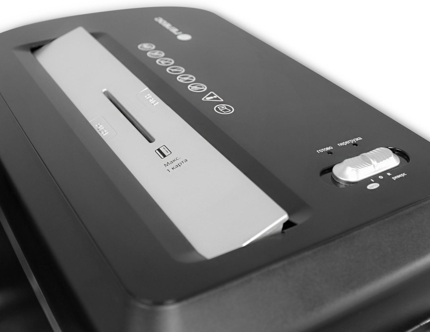 Шредер Heleos УМ35-5 черный / серебристый (секр.P-5) фрагменты 23лист. 35лтр. скрепки скобы пл.карты CD