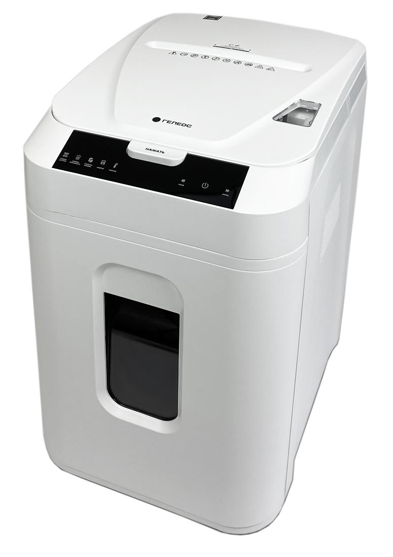 Шредер ГЕЛЕОС АП40-4 DIN P-4 (4 ур-нь секр.) фрагмент 39х12мм АВТОПОДАЧА 170 лист (70г / м2) пл.карты / скрепки / скобы 37 литров (В наличие в Москве)