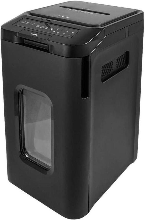 Шредер Heleos АП55-4 черный с автоподачей (секр.P-4) фрагменты 400лист. 55лтр. скрепки скобы пл.карты CD