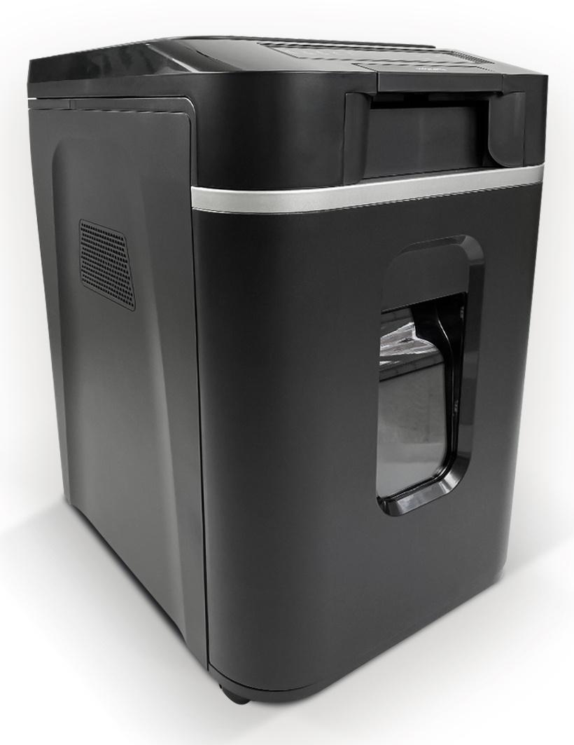 Уничтожитель документов ГЕЛЕОС АП40-4, DIN P-4 (4 ур-нь секр.), фрагмент 3,9х12мм, АВТОПОДАЧА 180 лист (70г / м2), пл.карты / скрепки / скобы, 37 литров