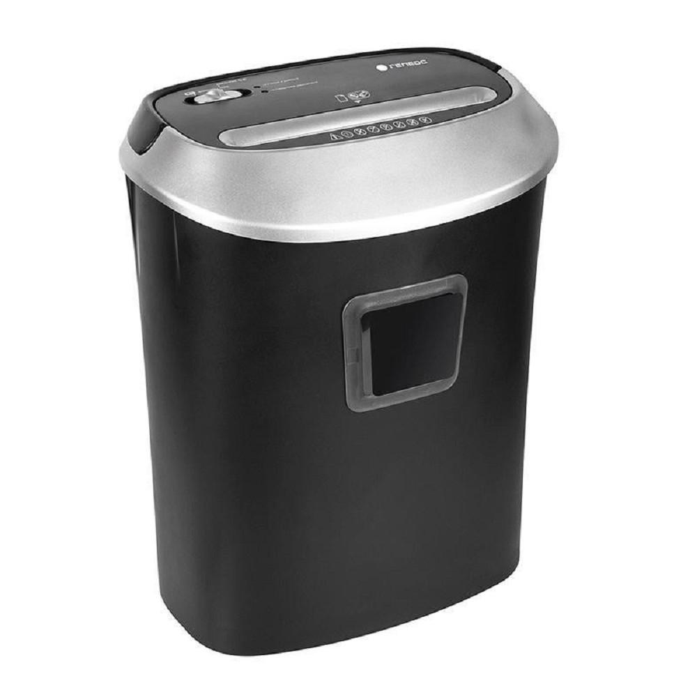 ГЕЛЕОС Уничтожитель документов УД10-2, DIN P-2 (2 ур-нь секр.), полоса 5,8мм, 6-8 лист (70г / м2), пл.карты / скобы, 10 литров