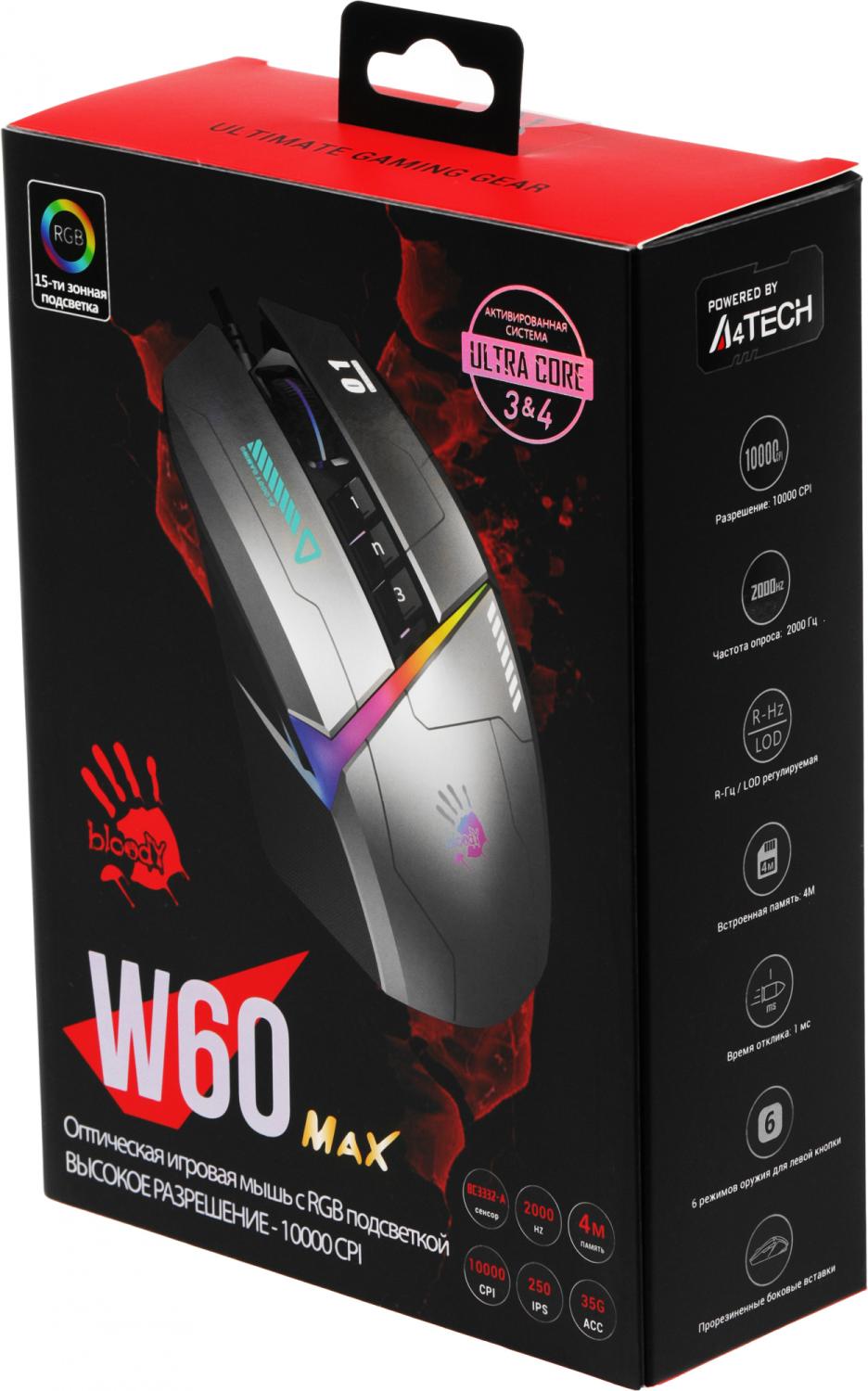 Мышь A4Tech Bloody W60 Max Gun серый / черный оптическая 10000dpi USB 10but