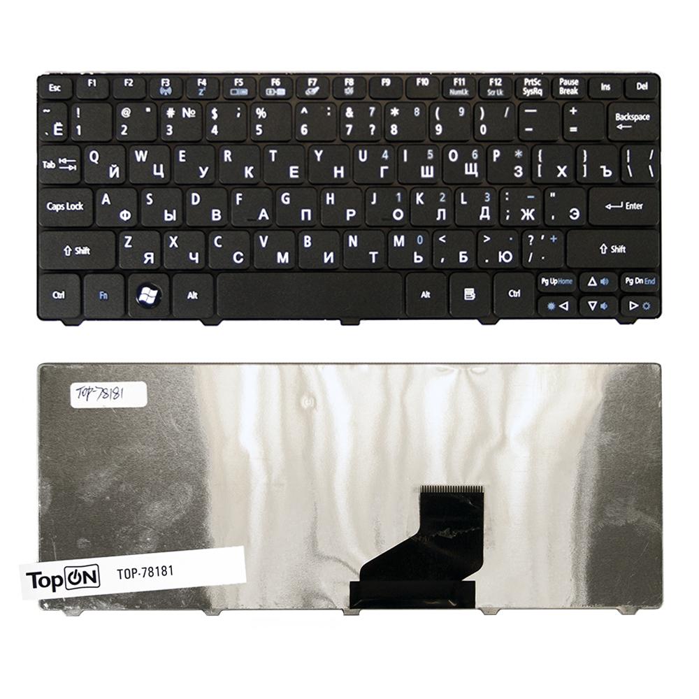Клавиатура для ноутбука Acer Aspire One 532, 522, D255, D260 Series. Плоский Enter. Черная, без рамки. PN: 90.4GS07.C0R.