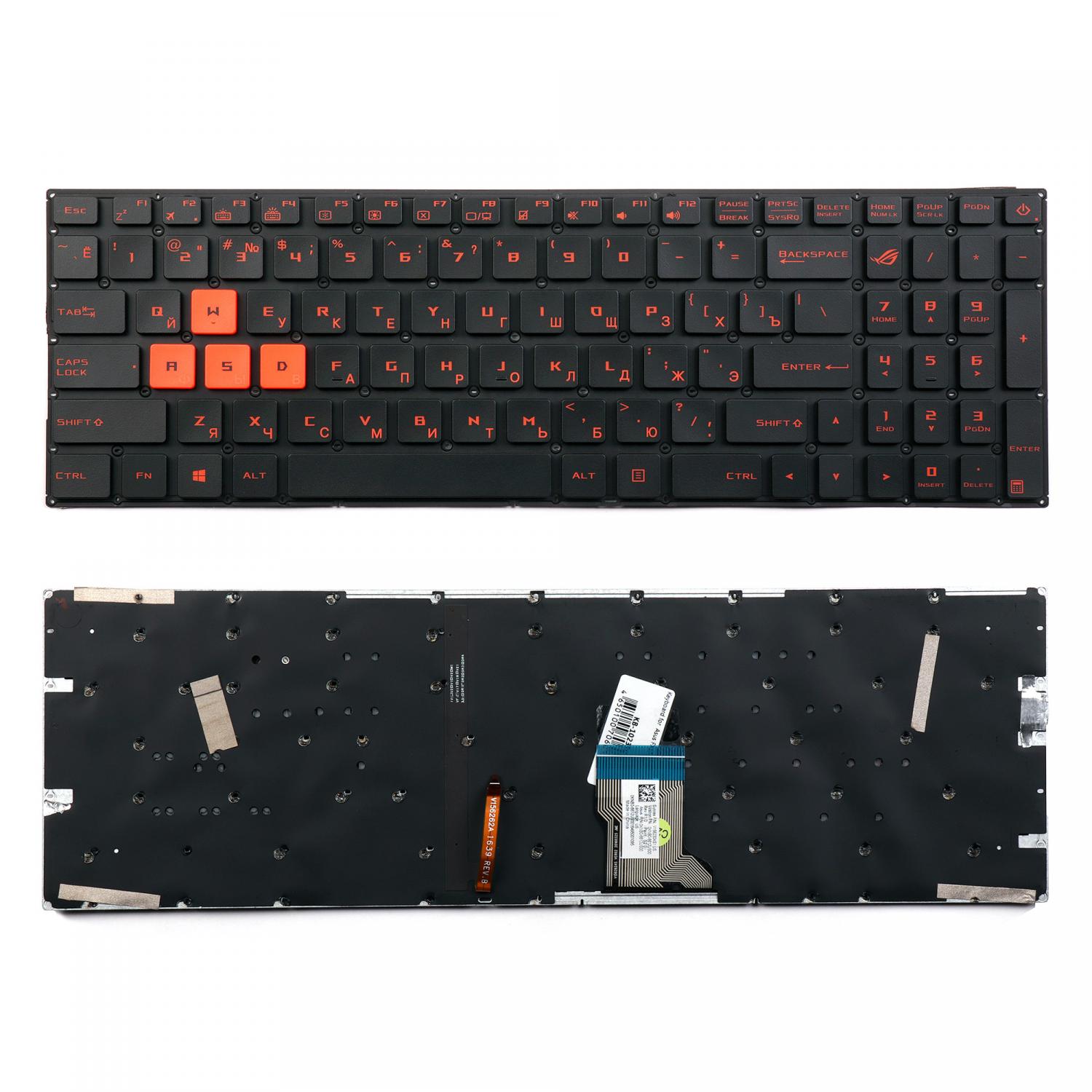 Клавиатура для ноутбука Asus FX502, FX502V, FX502VM, FX502VD Series. Плоский Enter. Черная, без рамки. С подсветкой. PN: 0KNB0-6615US00.