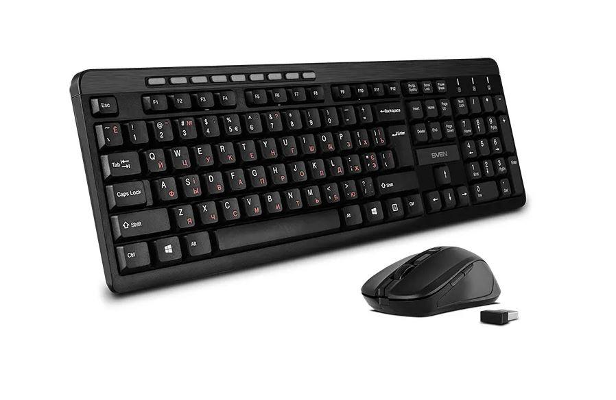 Набор SVEN KB-C3400W беспроводные клавиатура и мышь чёрные (USB, 113 кл, 6 кнопок, 1600 dpi)