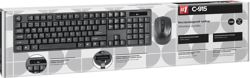 Беспроводной комплект (клав+мышь) Defender 45915 C-915 RU,черный,полноразмерный