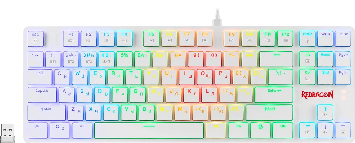 Игровая беспроводная клавиатура REDRAGON ANUBIS белая (USB, Bluetooth, 2.4G, OUTEMU BROWN, 87 кл ., RGB подсветка, 1900 мА)