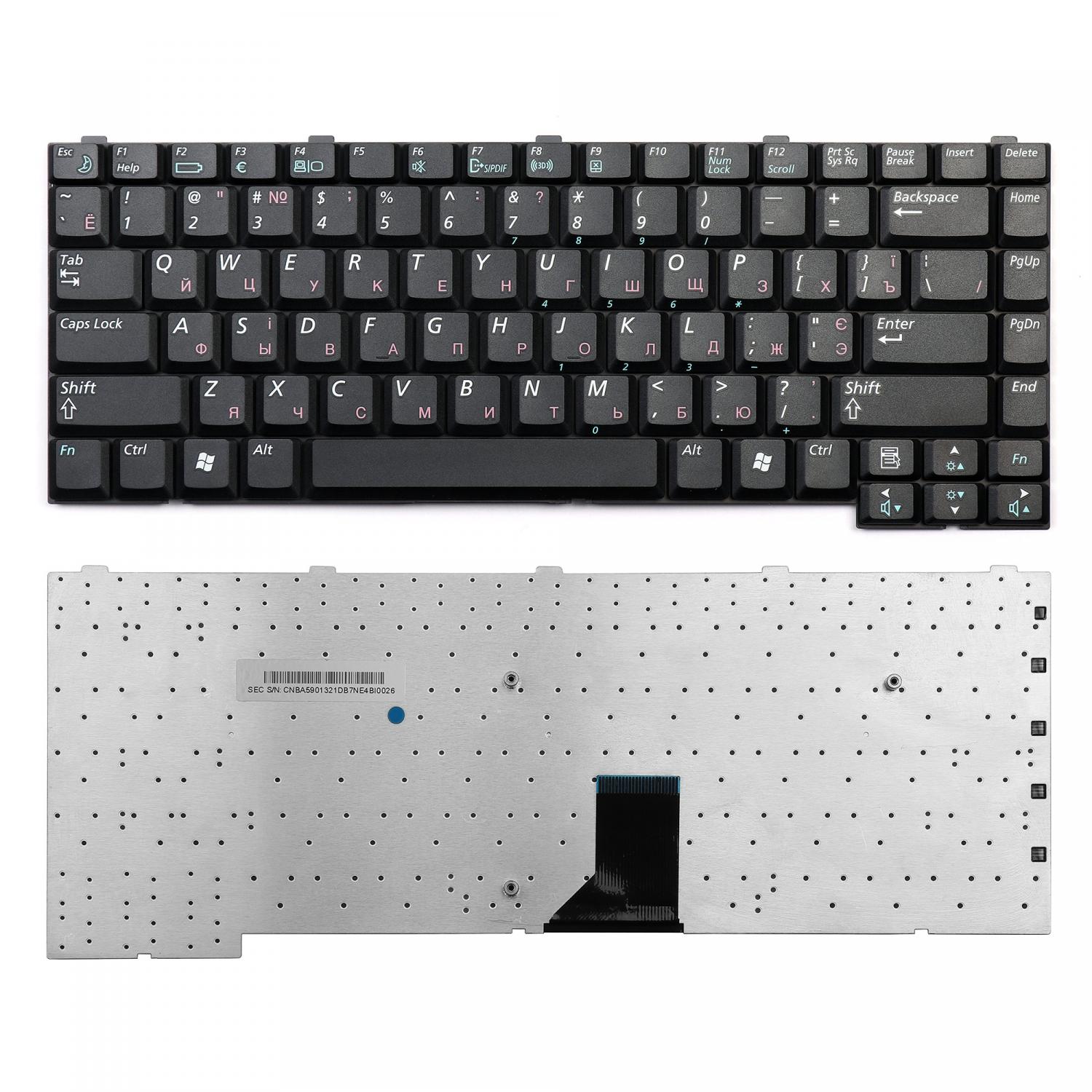 Клавиатура для ноутбука Samsung M40, M45, R50, R60 Series. Плоский Enter. Черная без рамки.