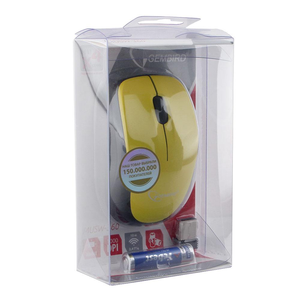 Беспроводная мышь Gembird MUSW-615 3кн 1200 DPI радиоканал желтый коробка