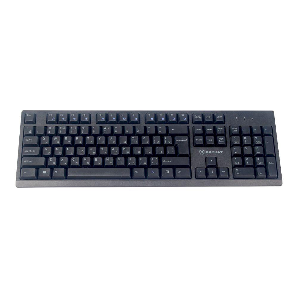 Комплект проводной Raskat KB2510 [ACD-KB2510-RBB] Клавиатура KB251 черная, 104 клавиши влаги, USB кабель 1.3 м, Мышь KM803 черная, оптическая, 1200dpi, 3 кнопки, USB кабель 1.3м, brown box {20} (783333) Bad Pack bp