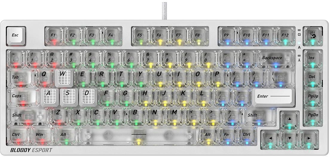 Клавиатура A4Tech MS76 механическая белый USB Multimedia for gamer LED кабель 1.8м