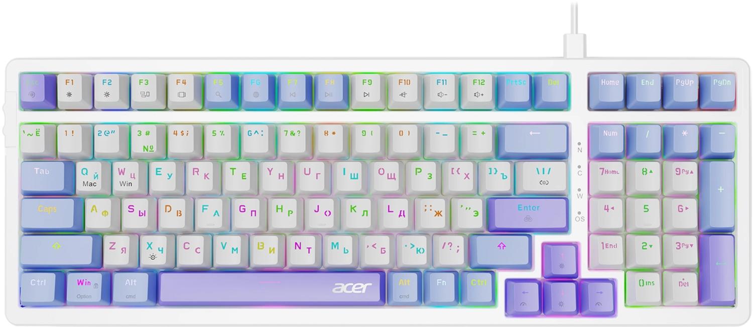 Клавиатура Acer OKW304 механическая белый USB Multimedia for gamer LED (ZL.KBDCC.01V)