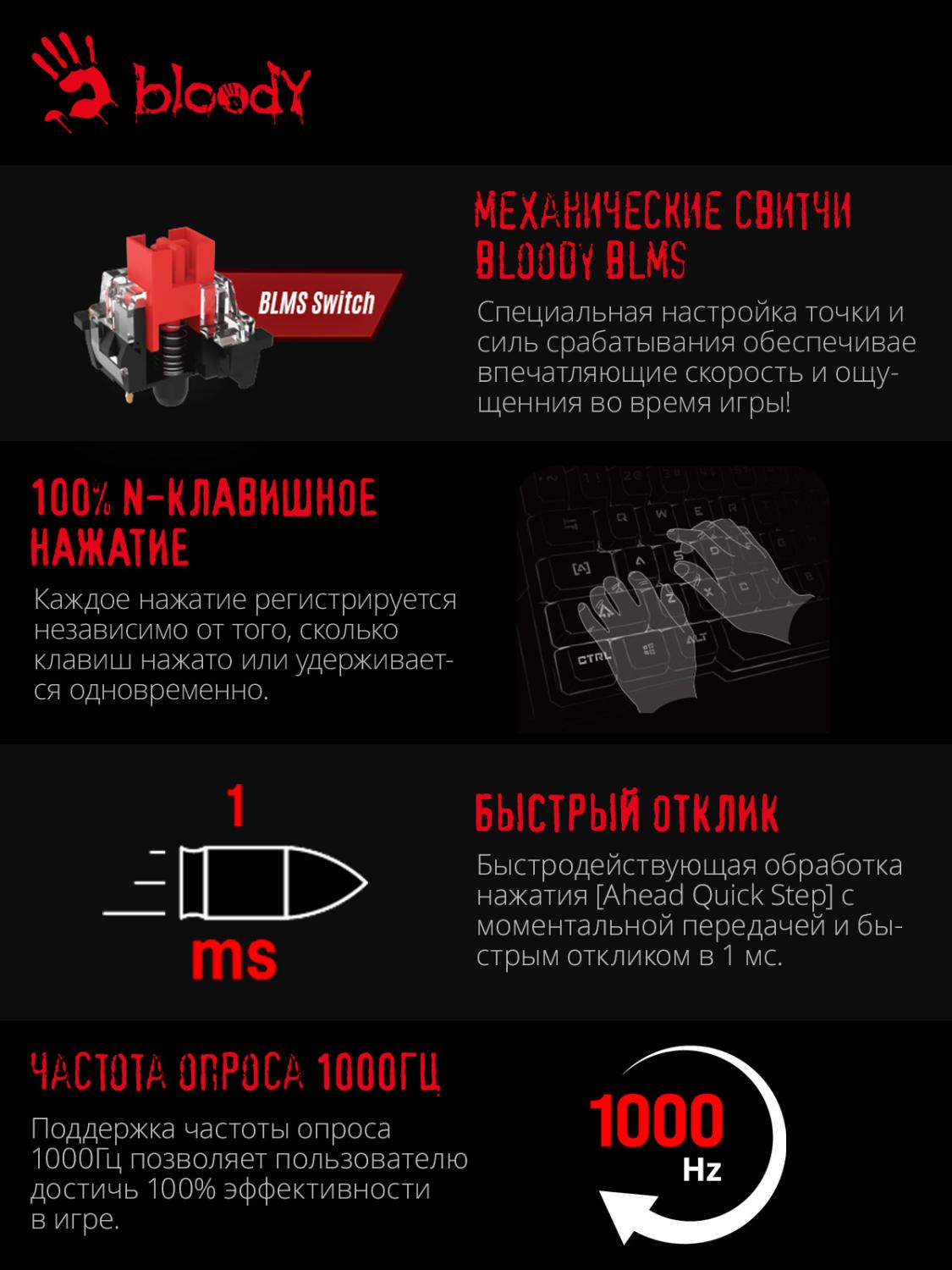 Клавиатура A4Tech Bloody S510N механическая черный USB for gamer LED (S510N (FIRE BLACK))