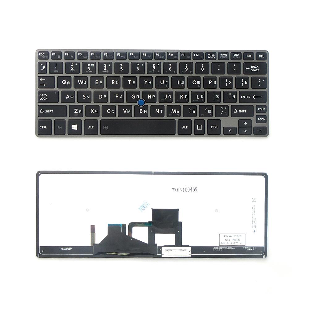 Клавиатура для ноутбука Toshiba Portege Z30 Series. Плоский Enter. Черная, с серой рамкой. С подсветкой. PN: Z9.NAJBN.00R.