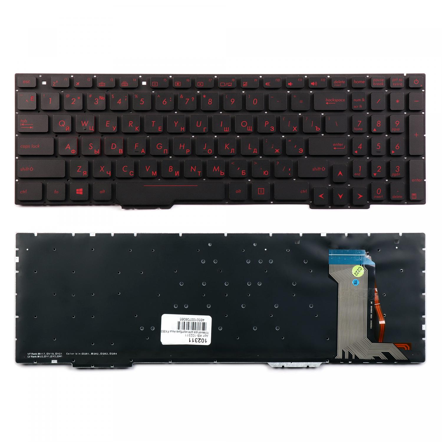 Клавиатура для ноутбука Asus FX553VD, FX53VD, FX753VD. Плоский Enter. Черная, без рамки. PN: V156362CS2.