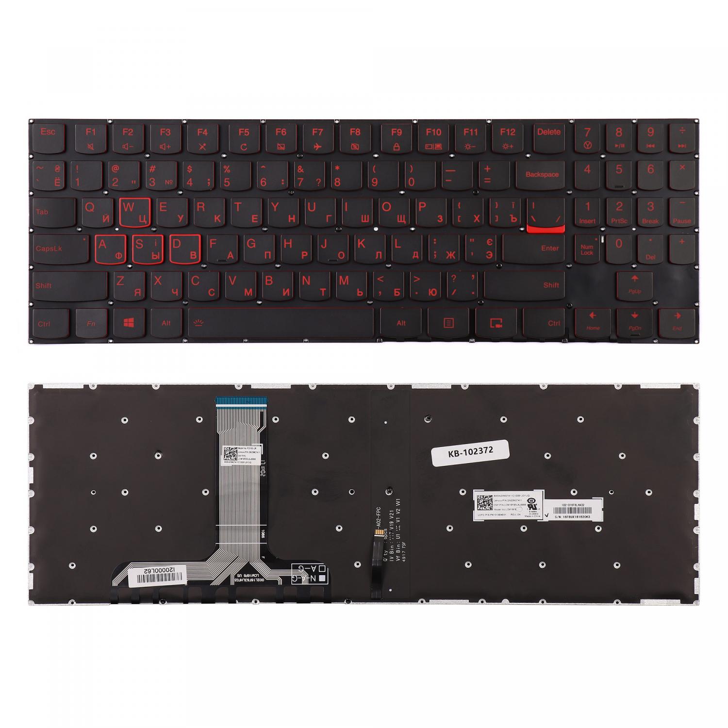 Клавиатура для ноутбука Lenovo IdeaPad Y520-15IKBN, Y520, Y520-15IKB Series. Плоский Enter. Черная, без рамки. С подсветкой. PN: 9Z.NDKPN.10R.