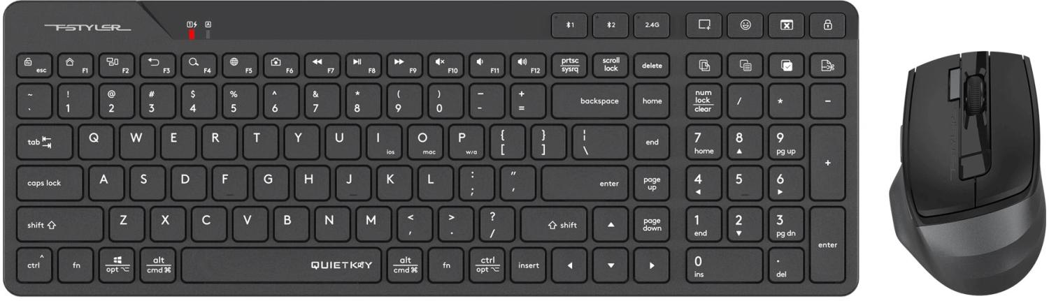 Клавиатура + мышь A4Tech Fstyler FB2535C клав:черный / серый мышь:черный / серый USB беспроводная Bluetooth / Радио slim (FB2535C SMOKY GREY)