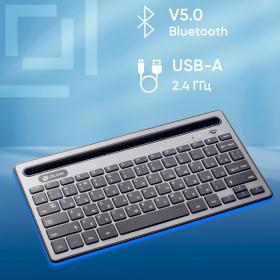 Клавиатура Оклик 845M серый / черный USB беспроводная BT / Radio slim Multimedia (1680661)