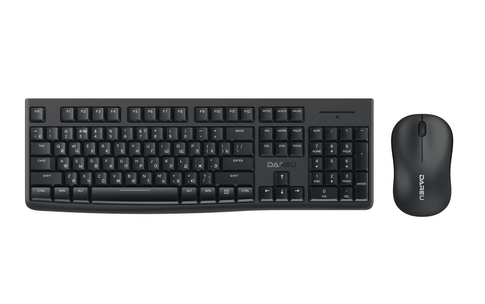 Комплект беспроводной Dareu MK188G Black (черный), клавиатура LK185G (мембранная, 104кл, EN / RU) + мышь LM106G (DPI 1200), ресивер 2,4GHz