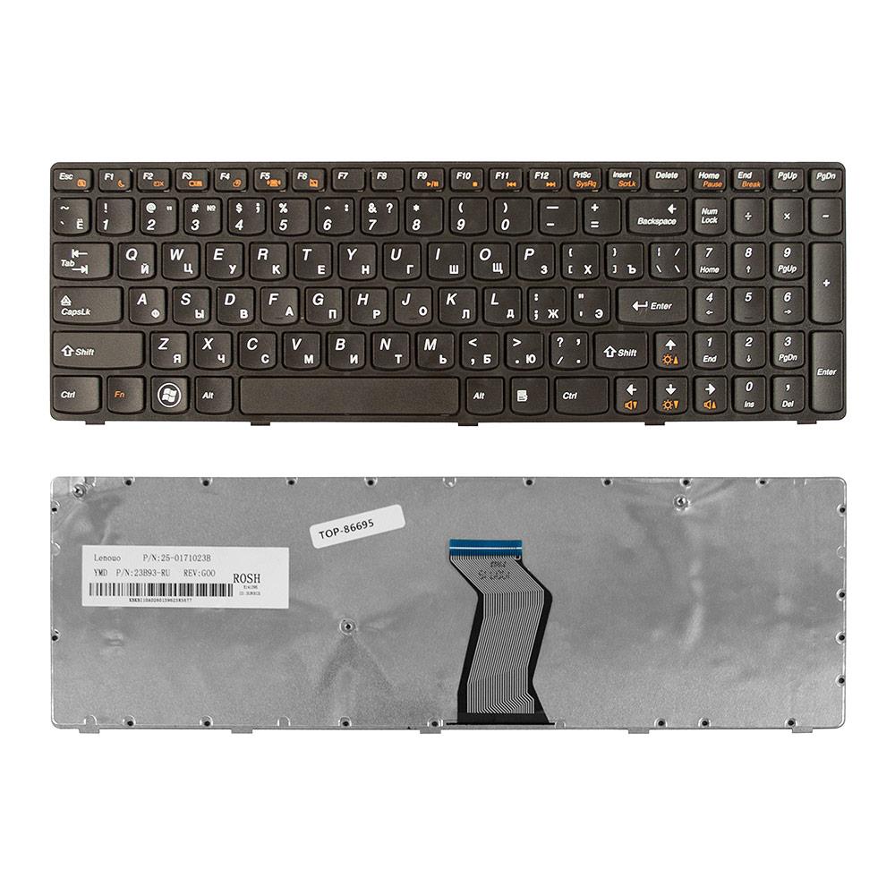 Клавиатура для ноутбука Lenovo Ideapad Z570, B570, B575, B590, V570, V580, Z575 Series. Плоский Enter. Черная, с черной рамкой. PN: 25201000.