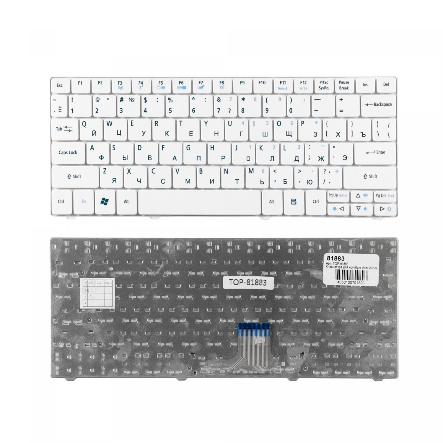 Клавиатура для ноутбука Acer 1810, 1830T, 721, 722, 751 Series. Плоский Enter. Белая, без рамки. PN: NSK-AQ00R.