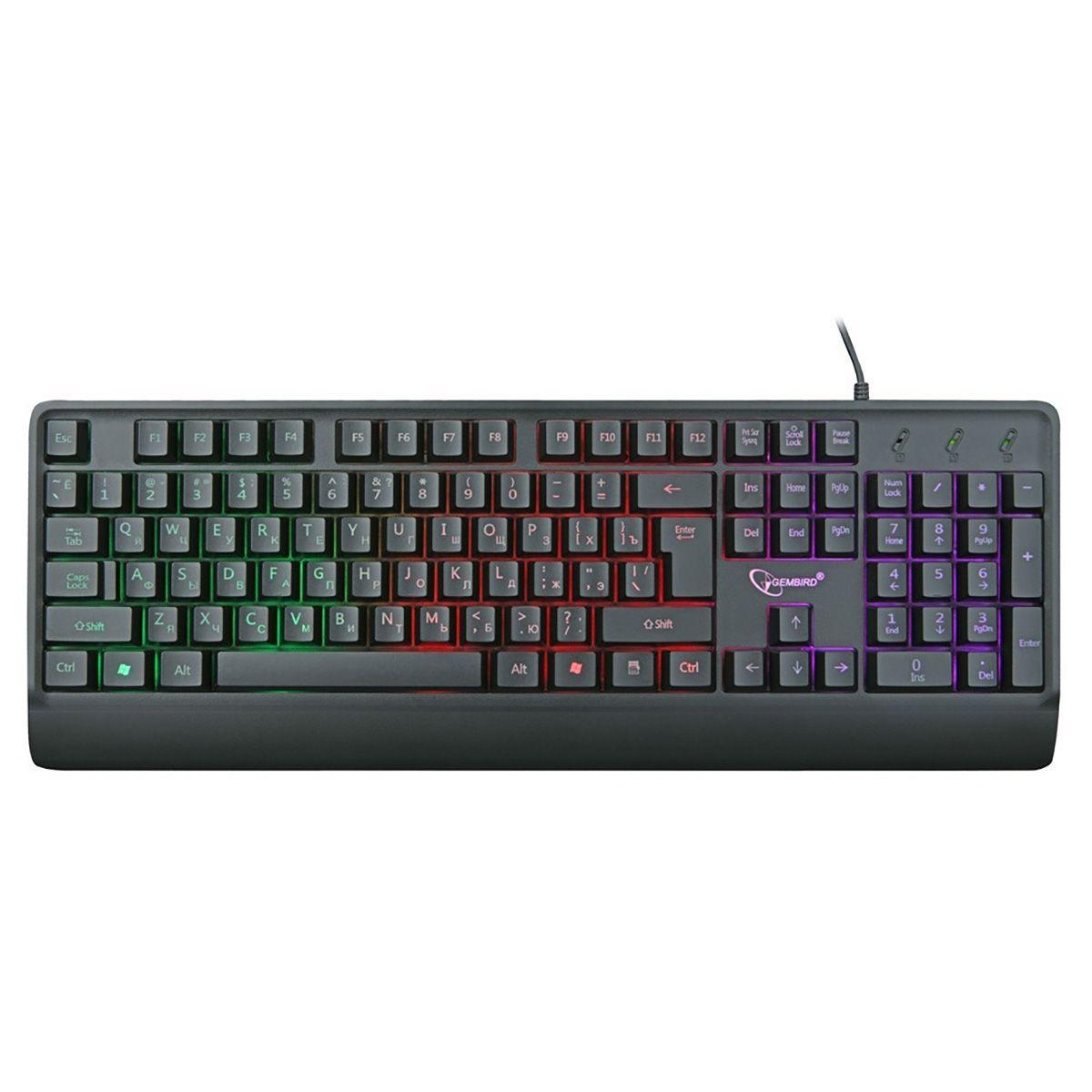 Клавиатура проводная игровая Gembird KB-220L, мембранная, 104 клавиш, подсветка Rainbow, кабель 1.5м, черная