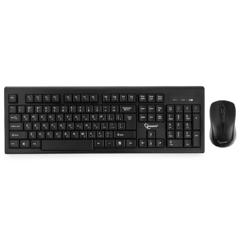 Комплект клавиатура и мышь Gembird беспров. KBS-8001, 2.4ГГц, черный, 104 клавиши+2 кнопки+колесо кнопка, 1000 DPI, батарейки в комплекте {20}