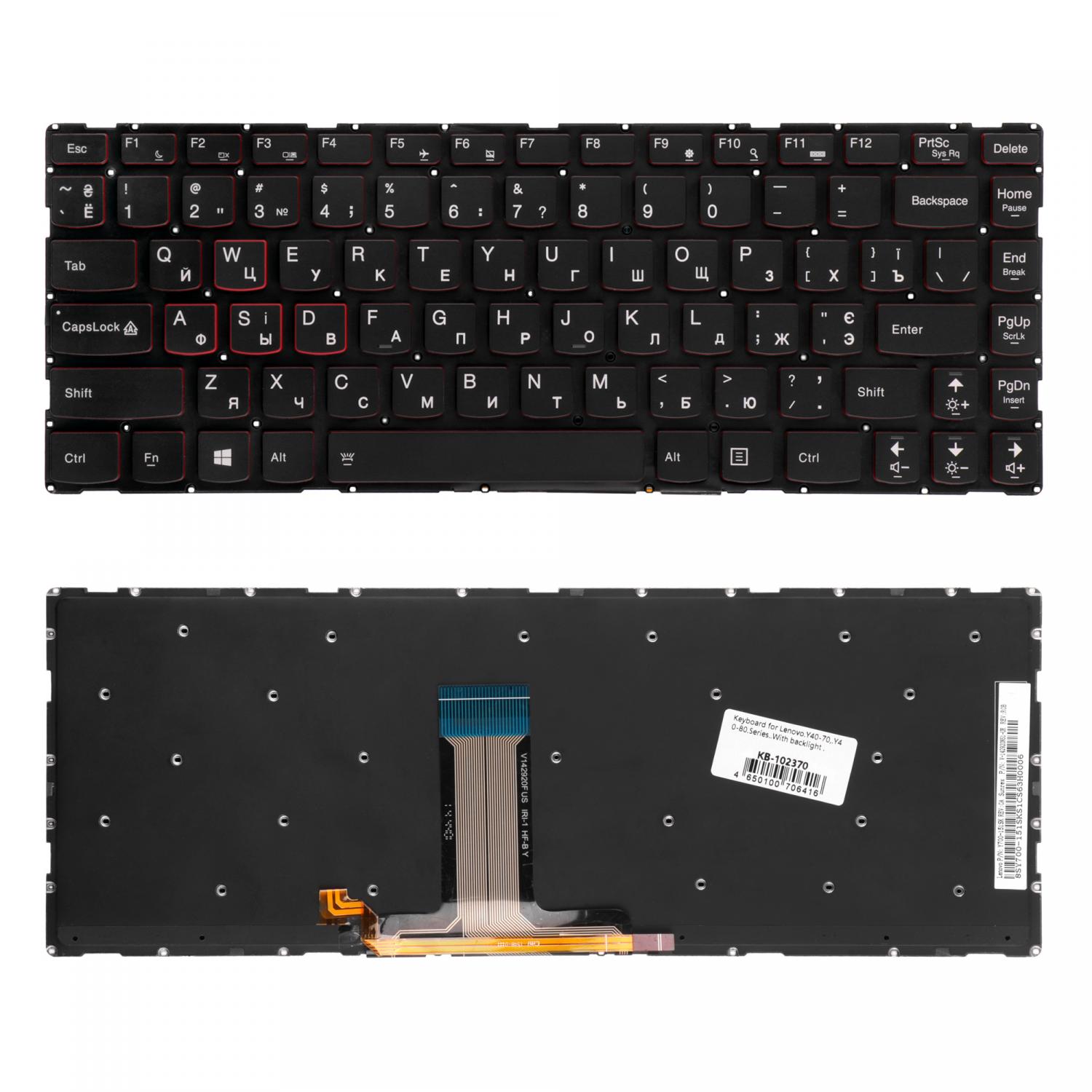 Клавиатура для ноутбука Lenovo Y40-70, Y40-80 Series. Плоский Enter. Черная, без рамки. С подсветкой. PN: V-142920NS1-UR.