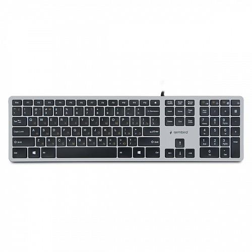 Проводная клавиатура Gembird KB-8420 полноразмерная 103кл+6 доп 14Fn ножничная тихая 1.5м серебристая