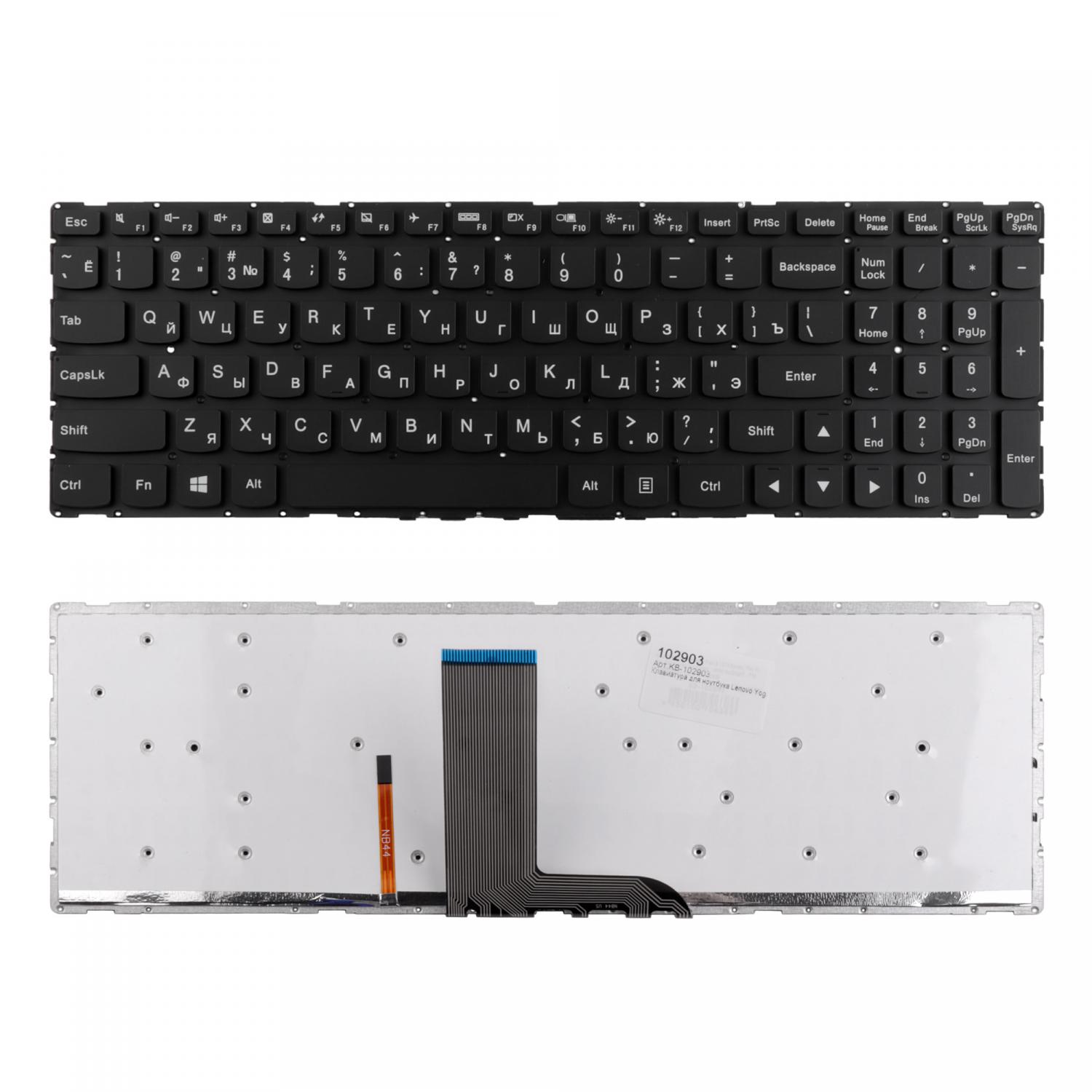 Клавиатура для ноутбука Lenovo Yoga 500-15IBD Series. Плоский Enter. Черная, без рамки. С подсветкой. PN: SN20G90940.