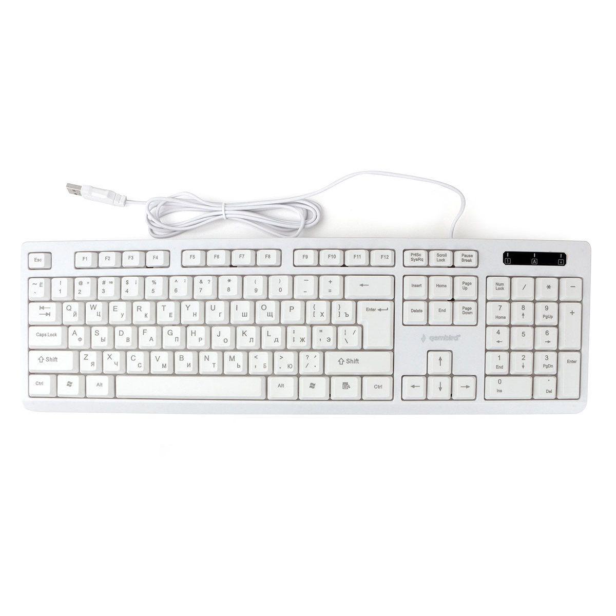 Клавиатура проводная Gembird KB-8355U, мембранная, 104 клавиш, лазер. гравировка, кабель 1.85м,белая