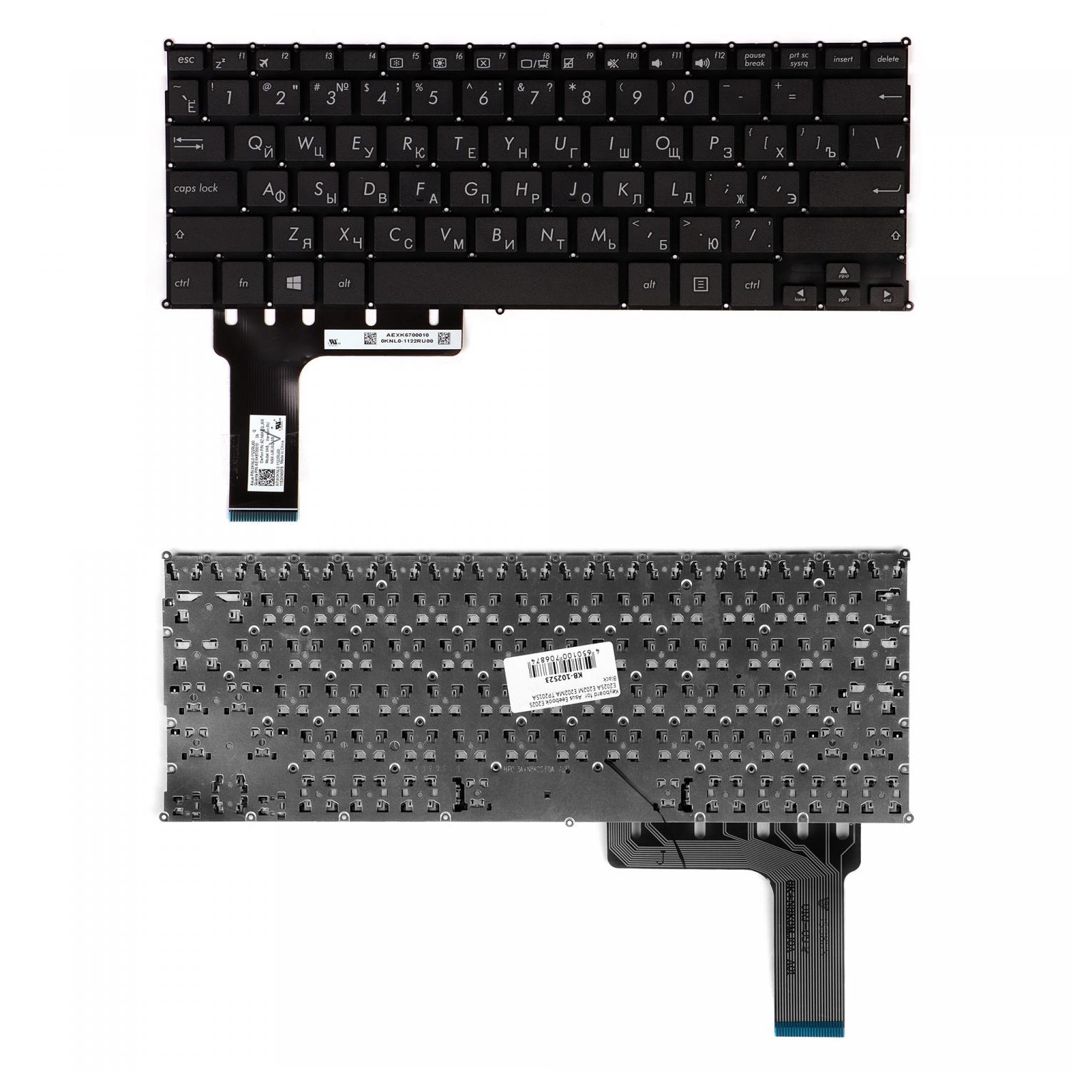 Клавиатура для ноутбука Asus Eeebook E202, E202M, E202MA, E202S, E20 Series. Плоский Enter. Черная, без рамки. PN: 0KNL0-1122RU00.