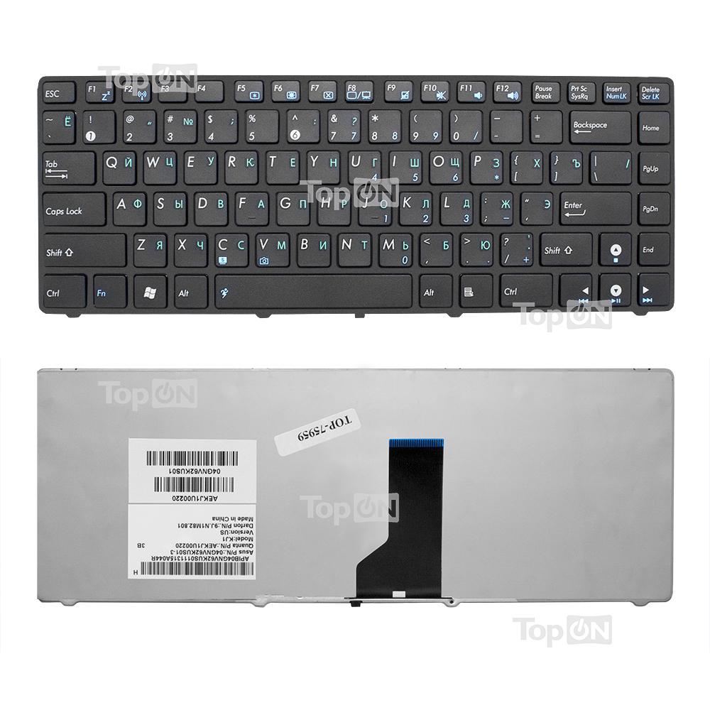 Клавиатура для ноутбука Asus K43, K42, X42, UL30, UL80 Series. Плоский Enter. Черная, с черной рамкой. PN: NSK-UC301.