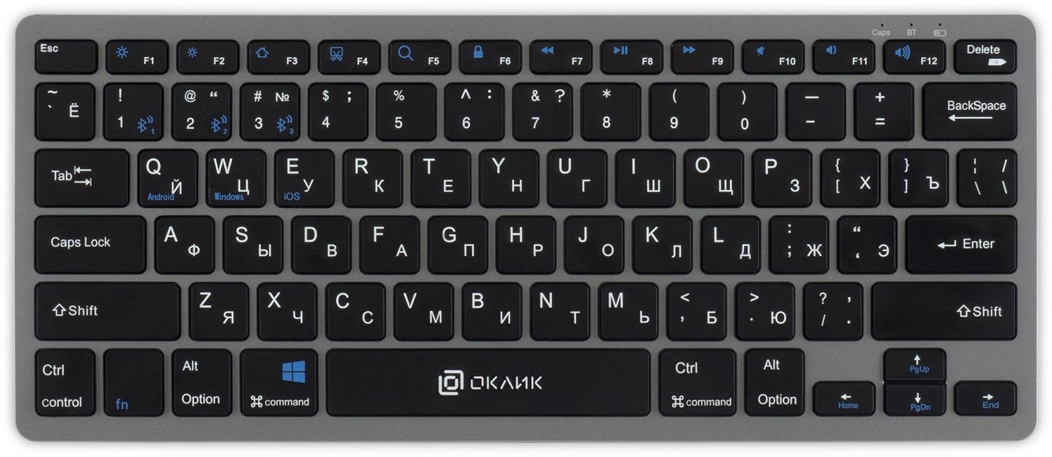 Клавиатура Оклик 835S серый / черный USB беспроводная BT / Radio slim Multimedia (1696467)