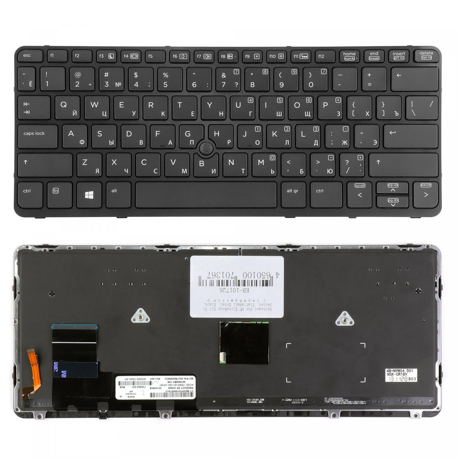 Клавиатура для ноутбука HP EliteBook 720 G1, 820 G1 Series. Плоский Enter. Черная, с черной рамкой. С подсветкой. PN: 9Z.N9WBV.10R.